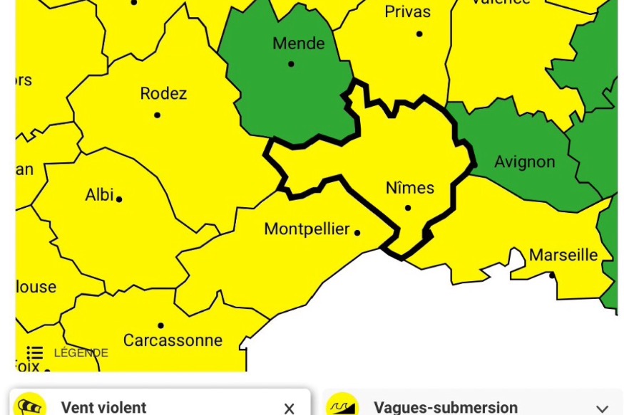 ➡️ @meteofrance a placé le #Gard en vigilance Jaune Vent Violent ???? en début d’après-midi, un épisode orageux se mettant en place dans le sud ouest du pays.