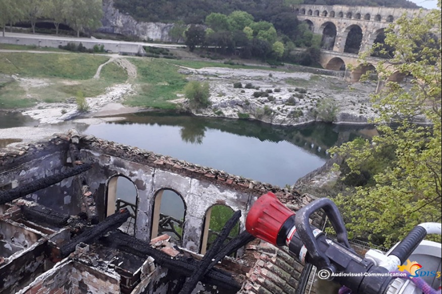 Mardi 21 avril, à 00h41, Les sapeur- pompiers du Gard sont intervenus sur le site du Pont du Gard pour un feu dans un mas dit' le vieux Moulin',