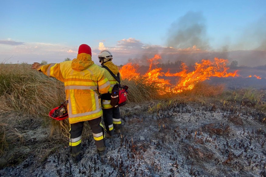 Depuis 17h, les #Pompiers13 sont mobilisés sur une intervention de longue durée : un feu de végétation dense dans une zone marécageuse au bord de la D83D, sur la commune d'Arles.