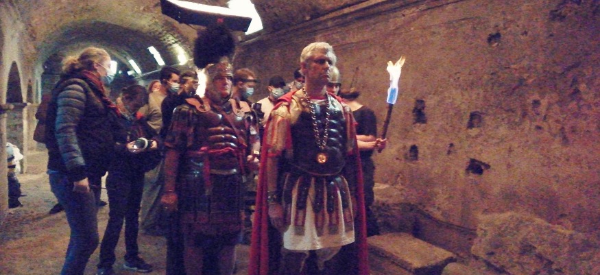 "Jules César avance, l'air sévère, vers la prison où est enfermé Vercingétorix. La scène s'est déroulée jeudi 1er avril sous vos pieds, dans les cryptoportiques d'Arles, dans le cadre du tournage d'un court-métrage intitulé "Enemy of Rome", retraçant les moments clés de la vie du célèbre chef gaulois. L'équipe du film va maintenant prendre la route du Puy du Fou, où doit être jouée une scène de bataille. Le réalisateur Nicolas Van Beveren souhaite se servir de ce court-métrage pour faire ensuite de "Enemy of Rome" une véritable série."