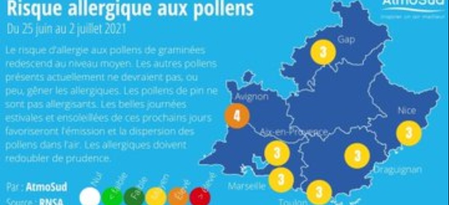 Les pollens de pin ne sont pas allergisants et ne gêneront pas les allergiques.Les belles journées estivales et ensoleillées de ces prochains jours favoriseront l'émission et la dispersion des pollens dans l'air. Les allergiques doivent redoubler de prudence.
