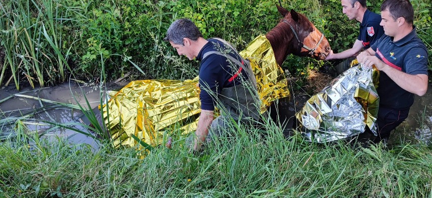 Vendredi 13 mai à 09h05. Les sapeurs-pompiers du Gard sont intervenus pour le sauvetage d'un cheval tombé dans une roubine. L'engagement d'un premier détachement de proximité, renforcé par un chef de groupe et l'équipe spécialisée d'intervention pour animaux ainsi qu'un vétérinaire et un tracto-pelle a permis de sortir le malheureux équidé très épuisé et traumatisé. Le propriétaire, sur place, a pris en charge l'animal suite à son sauvetage.